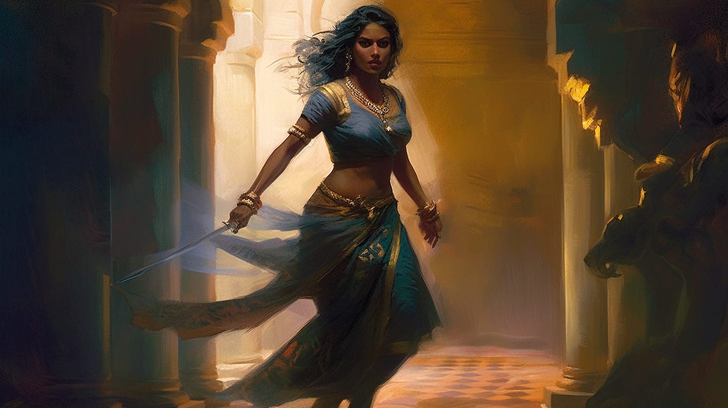 “Oh, you stubborn child!” Mārthāndan relented. This was no time, nor the place to argue. “At least let me lead, princess.” he struck a small piece of flint against his sword hilt, and lit a small torch on the wall.